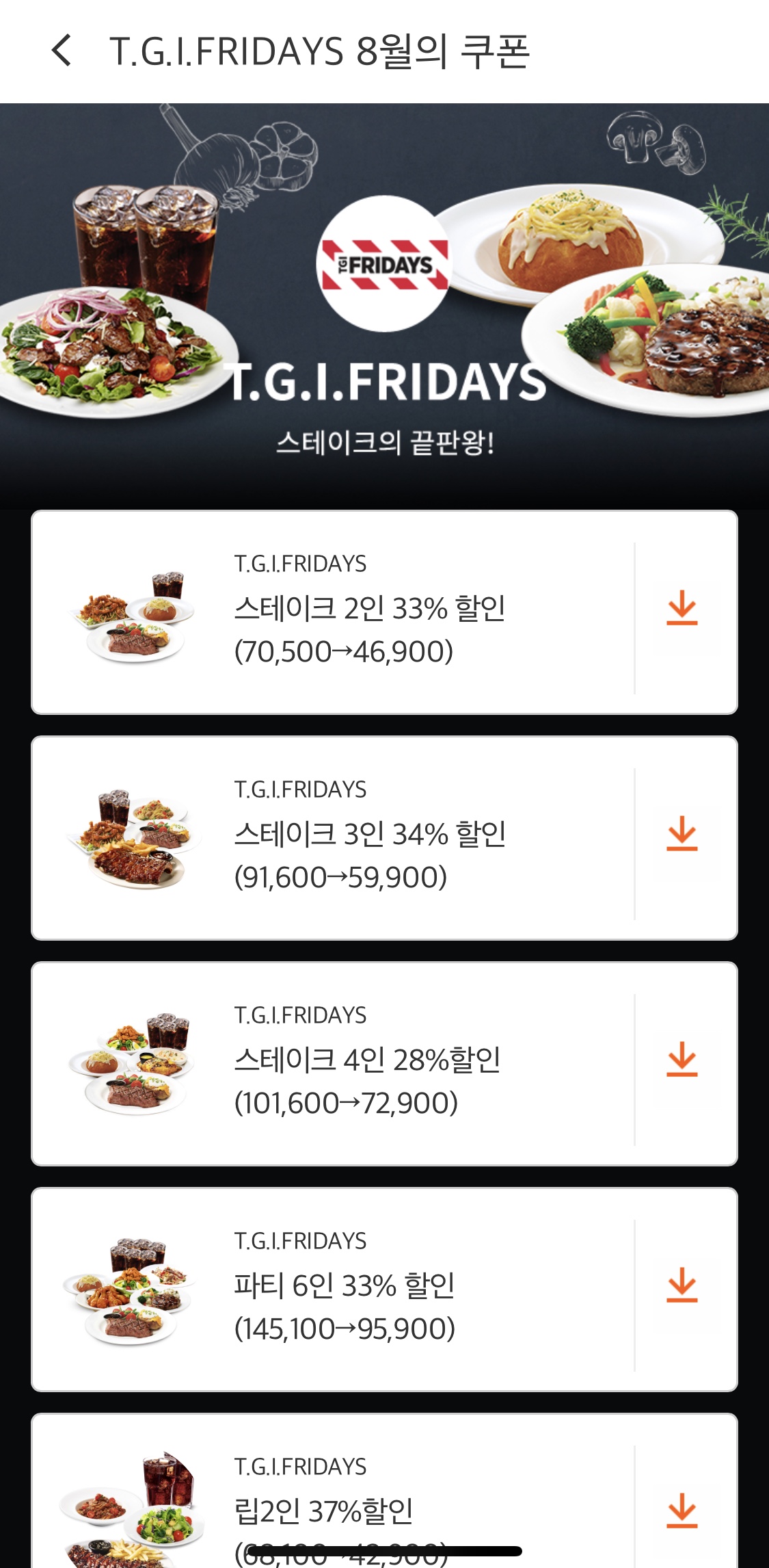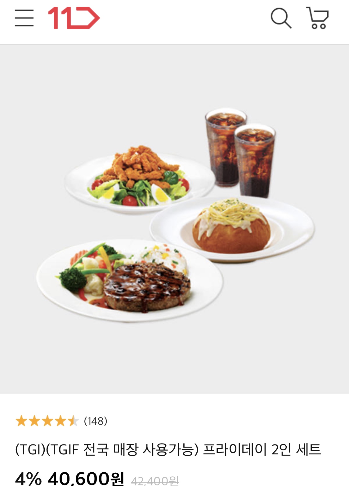 참!!! TGI는 멤버십 어플이나 11번가 옥션 등을 통해 저렴하게 쿠폰을 구입해