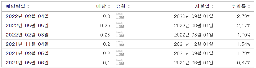 * 배당 지급일(PAYMENT DATE) : 배당이 실제 주주들에게 지급되는 날입니다.