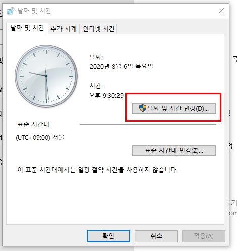 시계 모양의 새창이 열리면 "날짜 및 시간 변경" 클릭