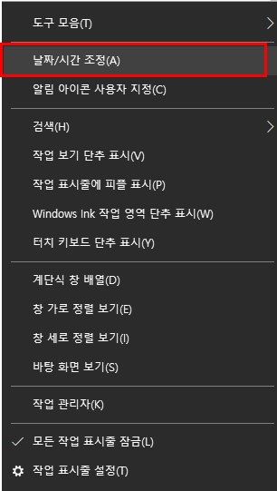 이번 시간에는 윈도우10 에서 시간 / 날짜 나오는 부분에 '요일' 이 나오게 세팅해보려 해요.