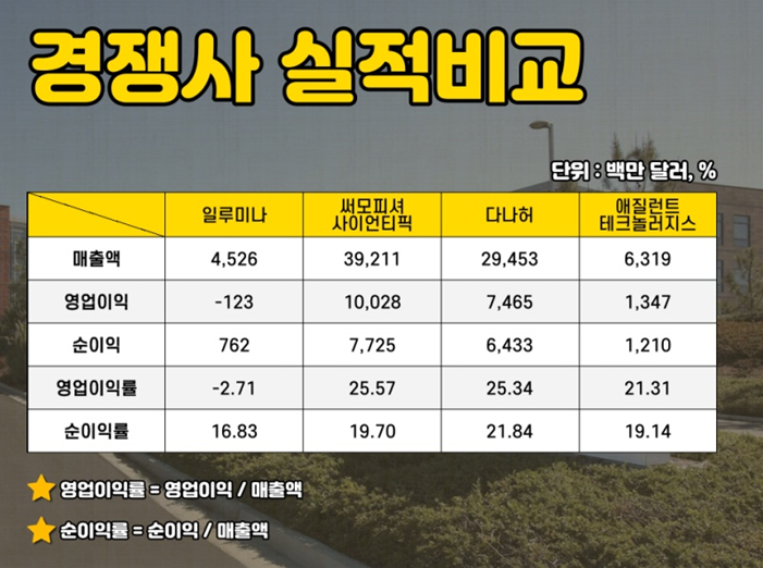 Illumina 경쟁업체로는 Thermo Fisher Scientific, Danaher 및 Agilent Technologies가 있습니다.