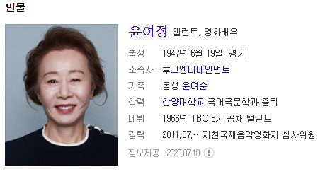 배우 윤여정 님의 미국 비평가 협회상 수상까지 이어가며 오늘 14관왕을 차지했고, 영어 인터뷰 실력이 월등하게 빼어나 현지인들과 기사를 접한 우리 모두 깜짝 놀라 실시간 검색어 상위에서 계속 머물고 있습니다.