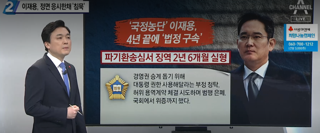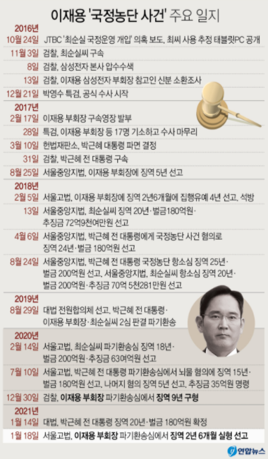 이재용 삼성전자 부회장 4년 끈 국정농단 이재용 재판, 징역 2년 6개월 실형