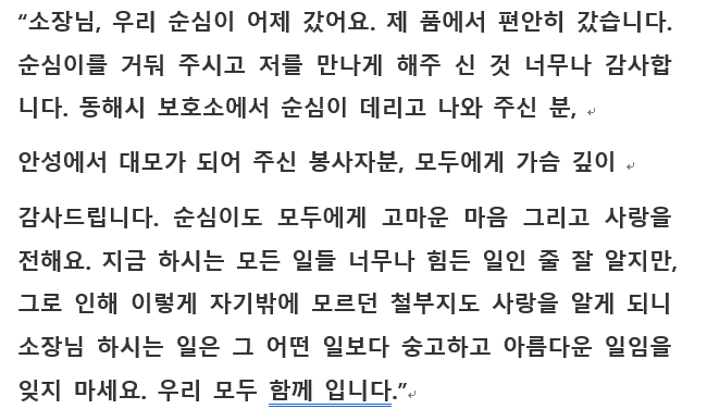 이효리씨가 평강공주보호소에 전한 전문입니다.
