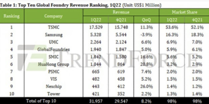 이 분야에서 절대적인 리더는 대만의 TSMC입니다.