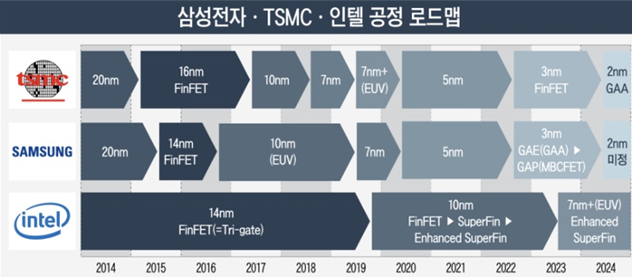 삼성전자와 TSMC는 모두 3nm 공정을 사용하고 있습니다.