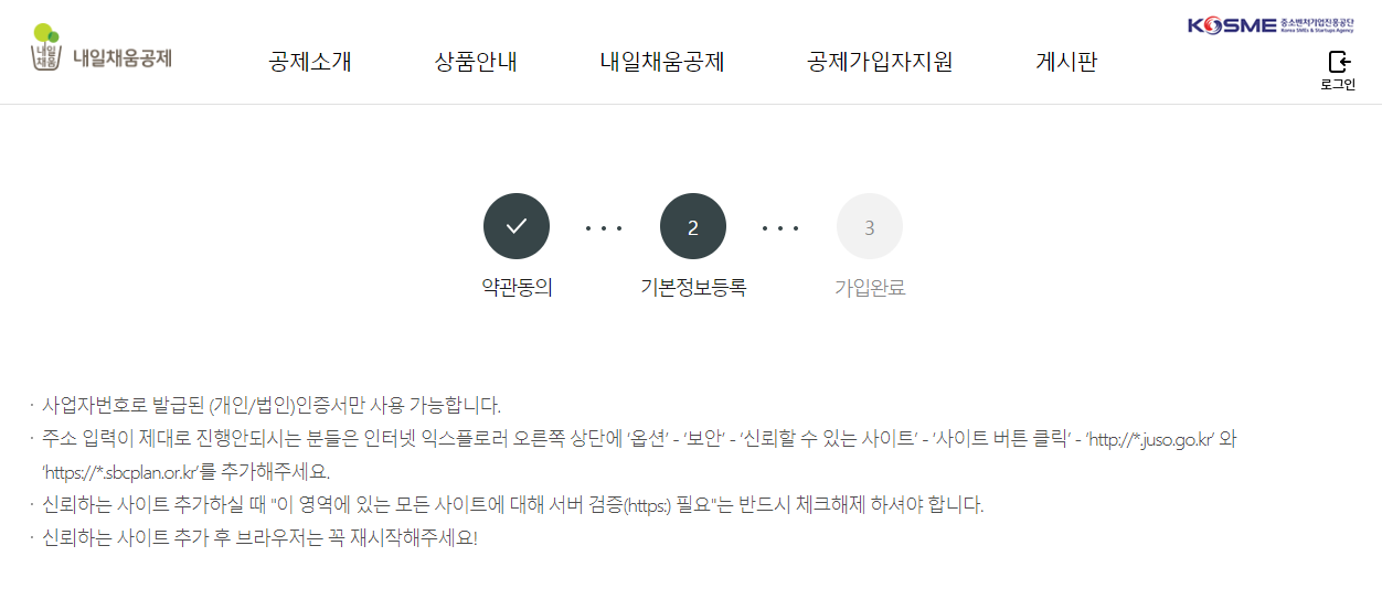 기업 가입이 안되어 있다면 가입을 진행해줍니다.
