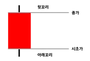 - 음봉은 아래로 내려가기 때문에 시가는 음봉 몸통의 위에 끝 / 종가는 음봉 몸통의 아래 부분