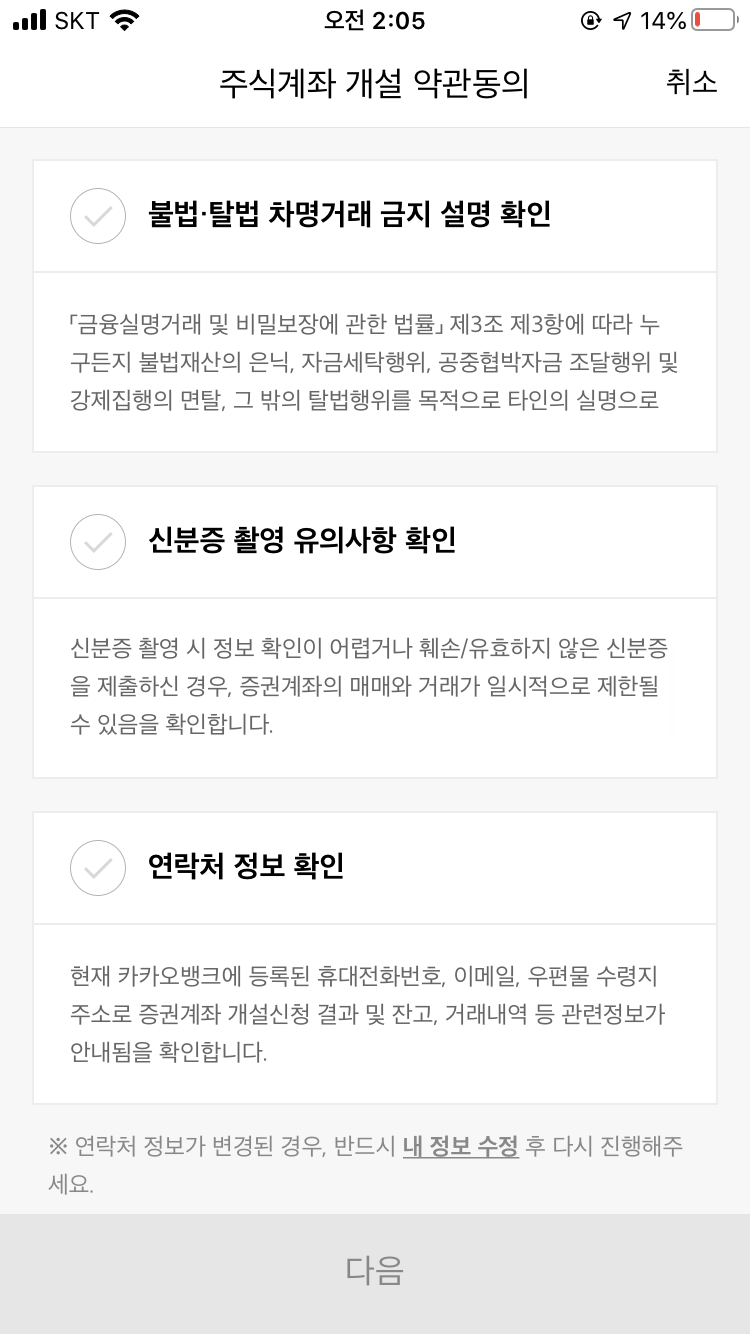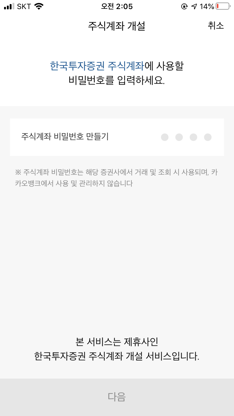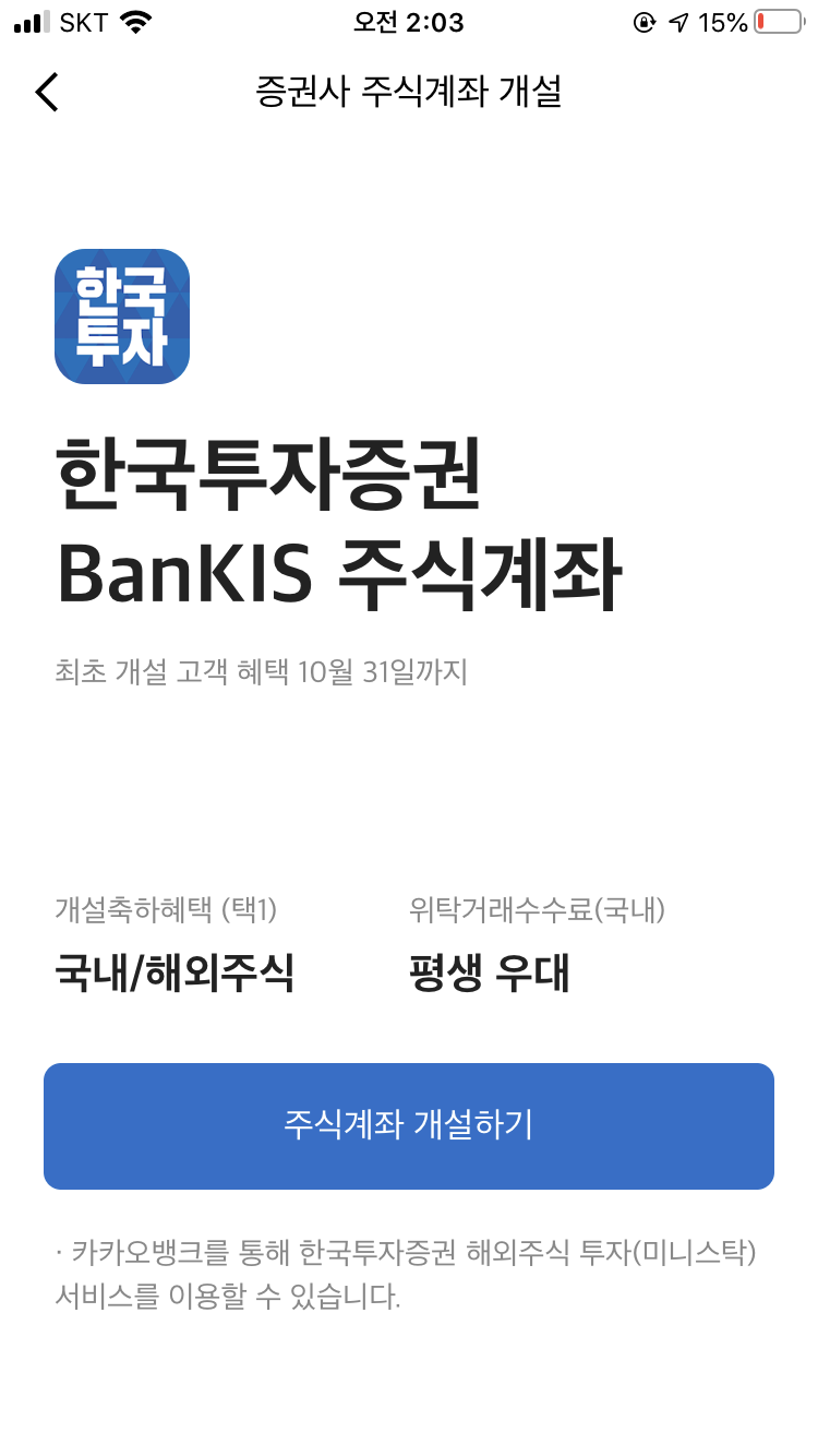 한국투자증권과 카카오 - 매수에는 미니스탁 서비스에 동의를 한번더 해줘야하나봐요.