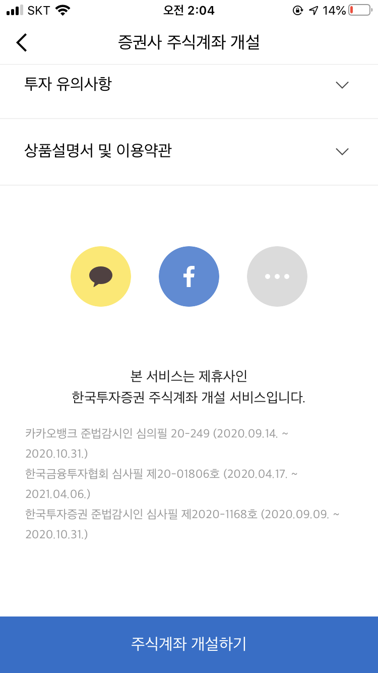 한국투자증권과 카카오가 손을 잡고 이런 서비스를 하고 있네요?
