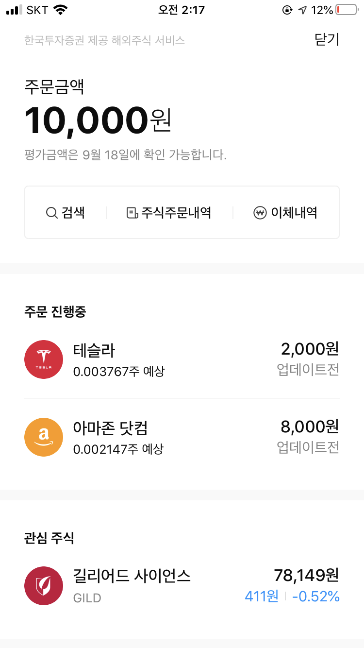 아마존 8천원 어치 / 테슬라 2천원 어치 이벤트로 2주 들어왔네요 ㅎㅎ
