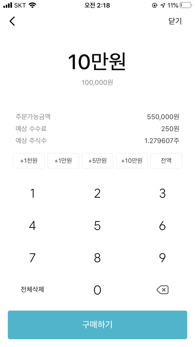 8) 즉 해당 주가로 주당 거래가 아니고 내가 매수하고자 하는 금액을 기준으로 주식을 분활 매수.
