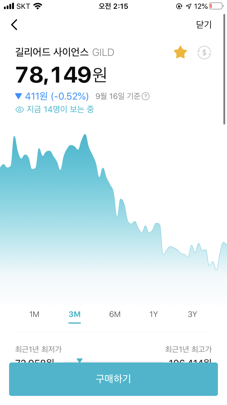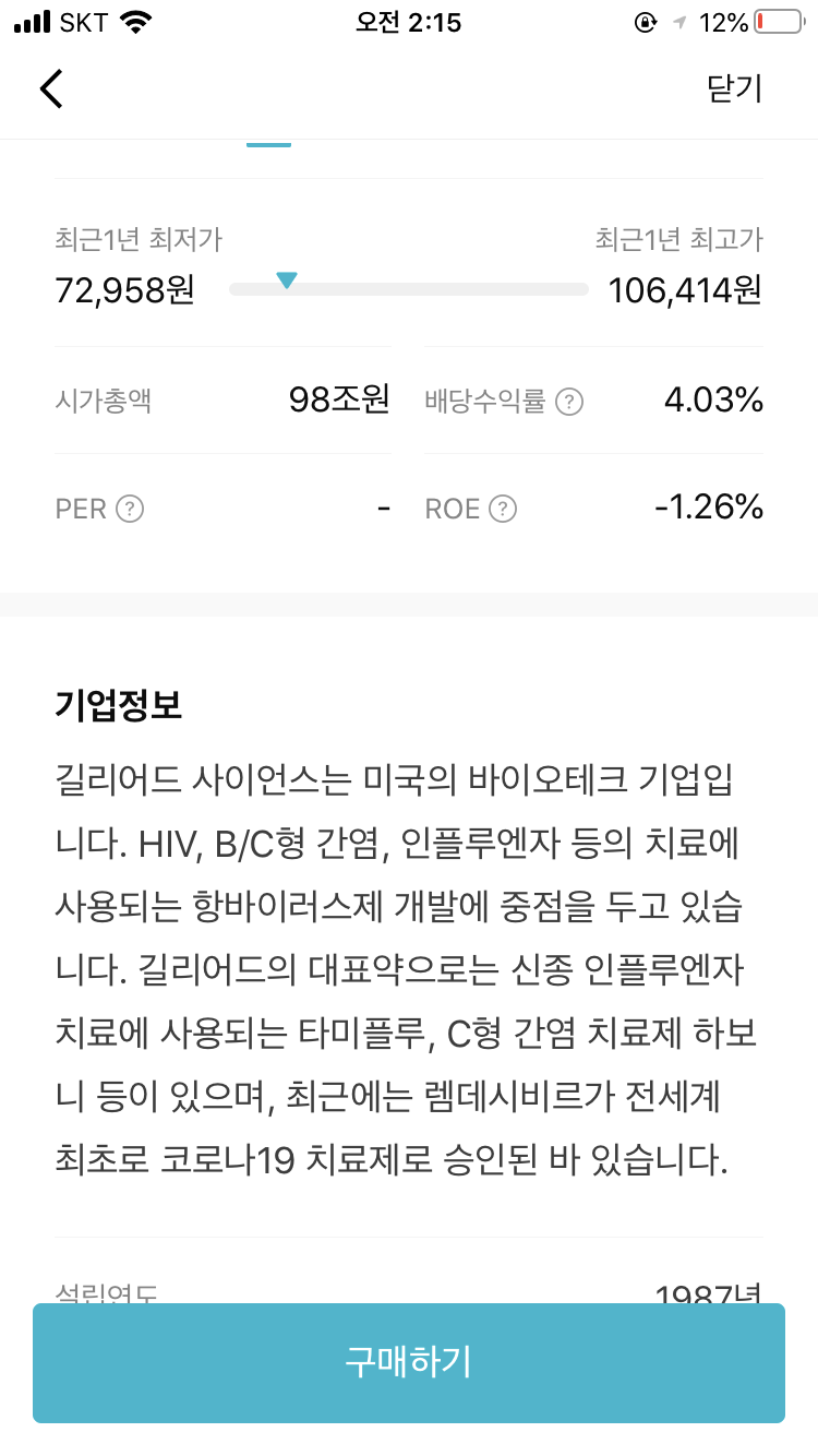 1픽은 아까 머크 실패해서 길리어드사이언스 GILD 로 사기로 했어요.