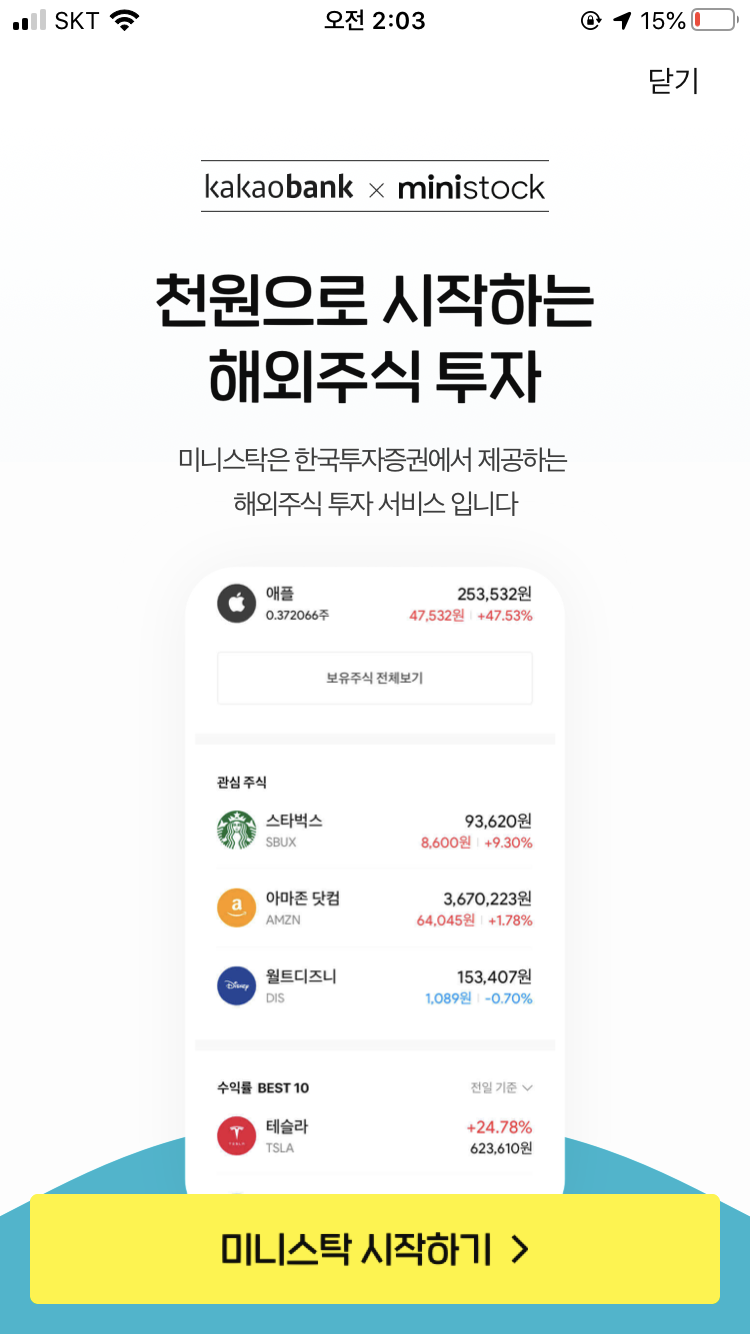 카카오뱅크에서 연계된 한국투자증권의 미니스탁을 이용하다보니 장단점이 있는데요