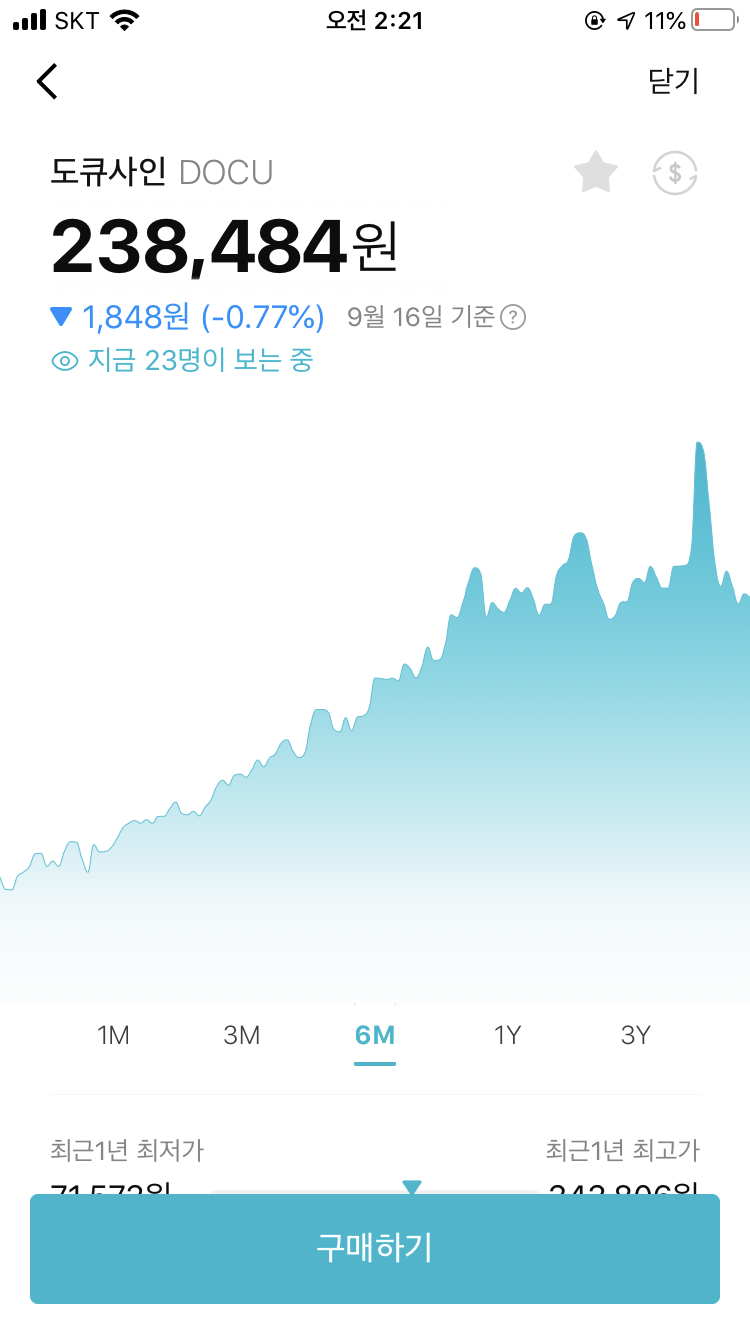 도큐사인 DOCU 기업의 오늘 주가가 238,484원이라면