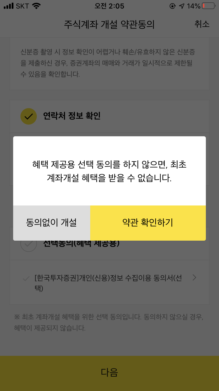 이런, 선택동의를 하지 않으면 해외주식 몇개 주는거 안준다네요 ㅠ 우라질..