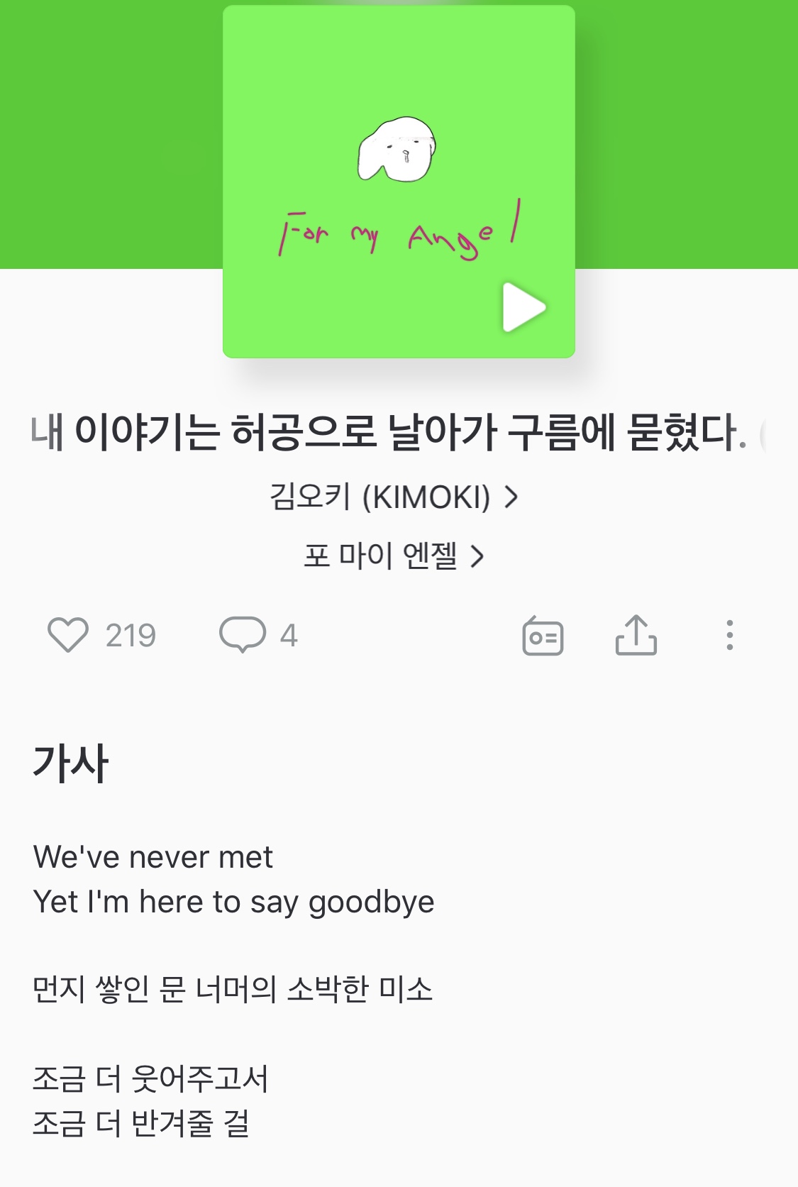 서정적인 가사와 기타 사운드가 참 듣기 좋아요