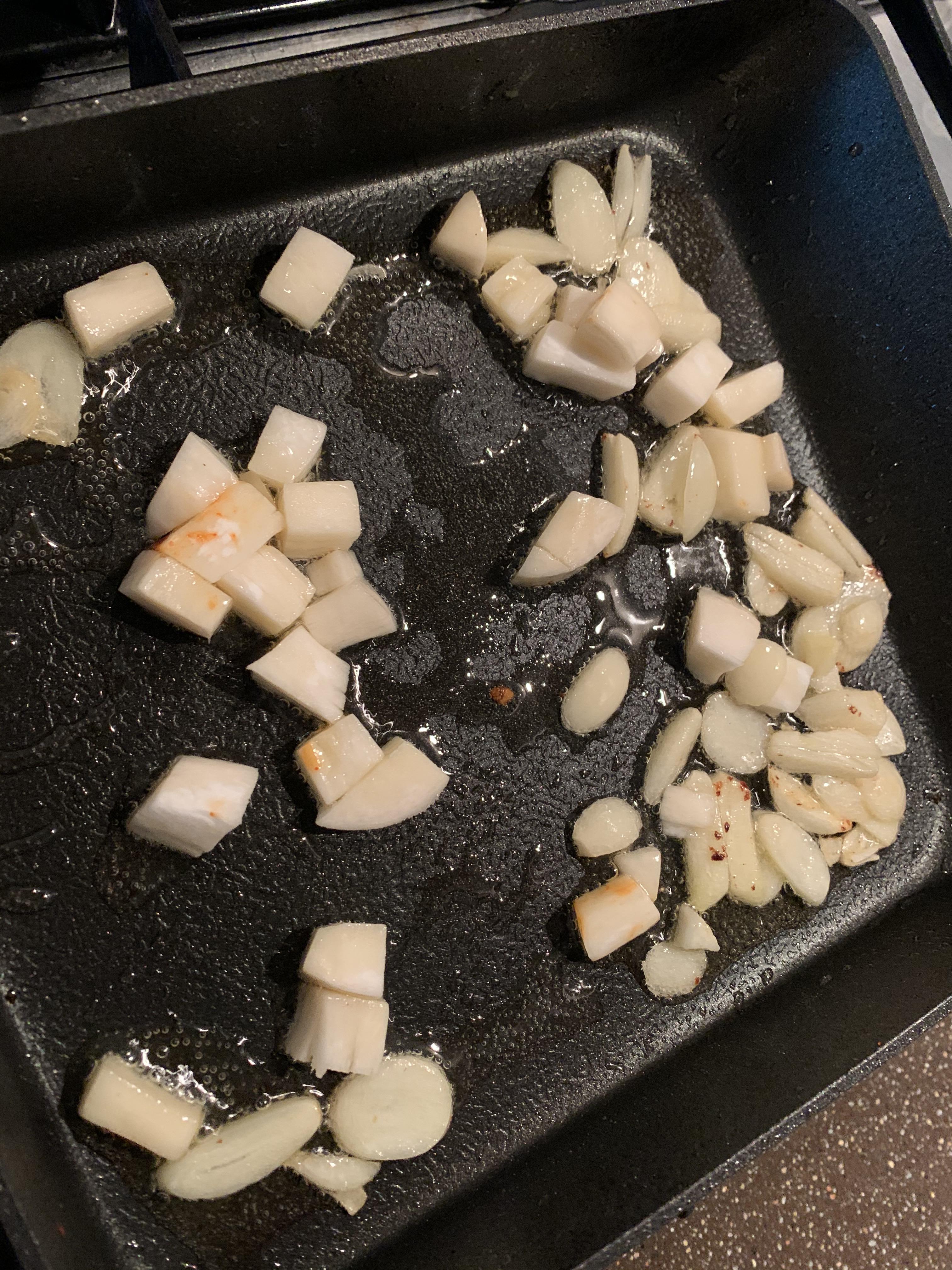 이 날은 오일을 팬에 흥건하게 뿌려준다 (?) 붓는다는 표현이 더 적합할 것 같아요 ㅎㅎ