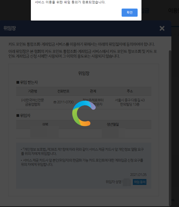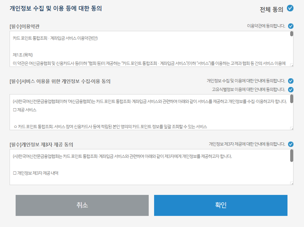 여신금융협회 카드포인트 통합조회하기