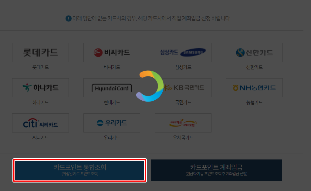 이외의 포인트에 대해서는 각 카드사로 문의하시면 됩니다.