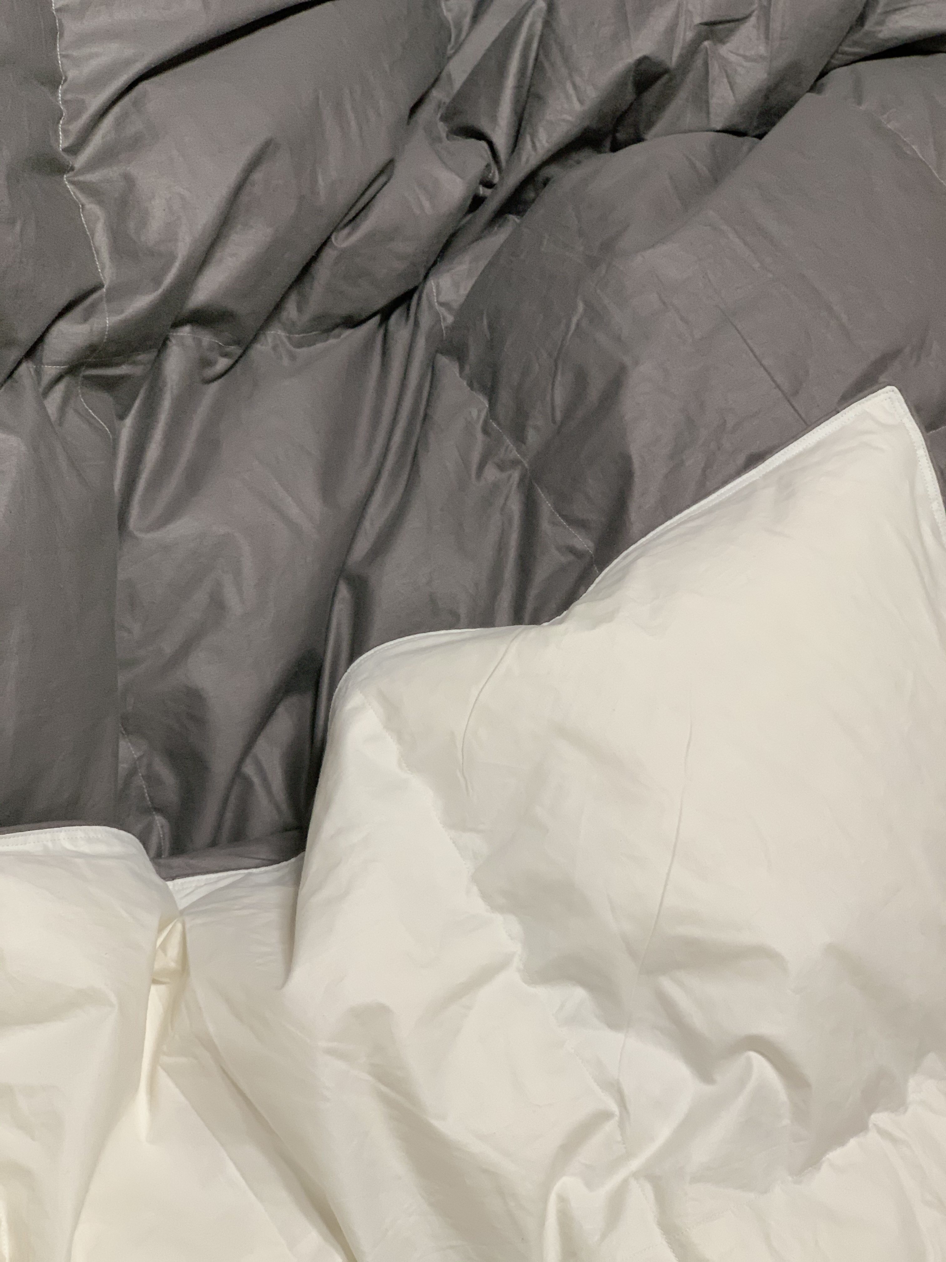 기존에 사용하던 제품은 하얀색 구스이불였는데 이 제품은 그레이와 화이트가 공존합니다.