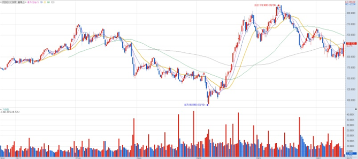 2020년은 신종 코로나바이러스 감염증(코로나19) 여파로 일시적인 매출 하락이 있었지만, 반대로 전 세계 온라인 쇼핑이 늘어나면서 택배 물량이 급증하고 주가가 이전 고점을 크게 웃돌았습니다.