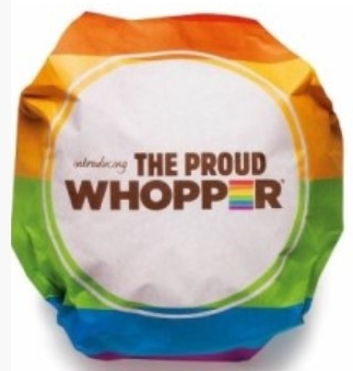 2014년에는 샌프란시스코 프라이드와 함께하기 위해 한정판 "프라우드 와퍼"를 출시했습니다. 이 햄버거는 게이 퍼레이드의 상징인 무지개색 포장지에 싸여 있습니다.