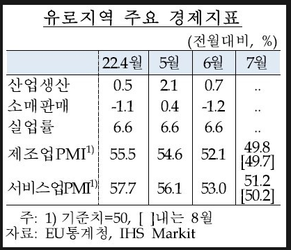 올해 말까지 유로존 경제는 에너지 공급과 수요의 차질로 인해 둔화될 것으로 예상됩니다.