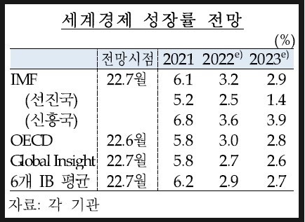 한국은행이 2022년 하반기와 2023년까지의 세계경제지표를 발표했습니다.