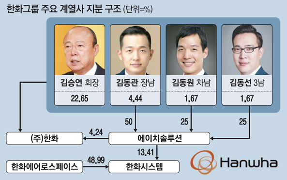 한화그룹이 지배구조 변화의 움직임을 보이고 있다. 새 정부가 기업의 투명한 지배구조를 추구하고 있는 데다 경영권 승계 준비 작업을 마냥 미룰 수