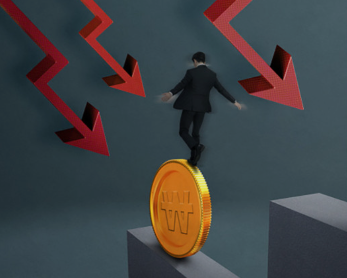 한국 원화는 강세를 보이고, 달러는 한국 원화에 대해 하락하기 시작합니다.