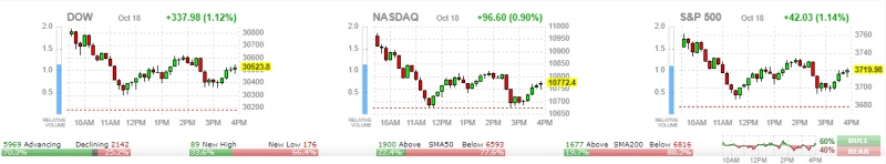 뉴욕증권거래소(NYSE) 다우지수는 전장보다 337.98포인트(1.12%) 상승한 30,523.80에 마감했으며 S&P 500은 42.03포인트(1.14%) 상승한 3,719.98에 마감했습니다.