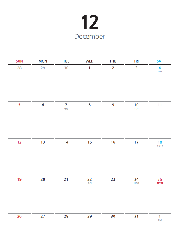 | 12월 | 25일 토요일 크리스마스 성탄절 |