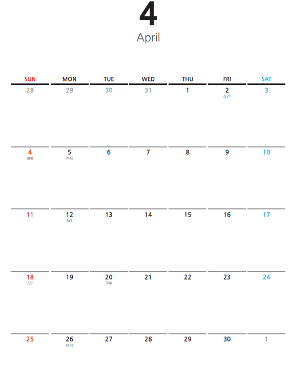 4월은 연휴없이 쭉 달려야하는 달 입니다. 주말을 잘 활용하여 쉬시는 것을 추천합니다.