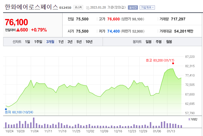 LIG넥스원, 한국항공우주, 현대로템, 풍산과 함께 대표적인 방산주이기도 하고