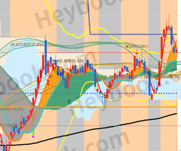 일단 그물망 물결이 겹치면 주가는 90% 확률로 상승한다.