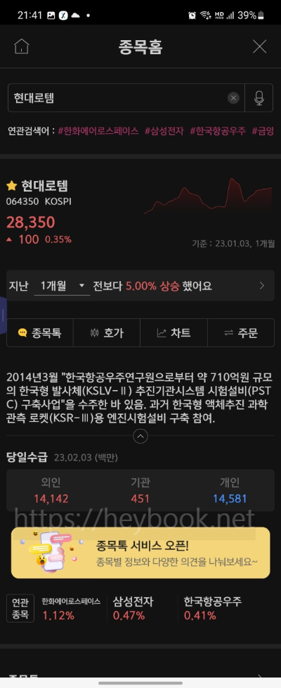 국내 증시 현대로템 주식 매매일지