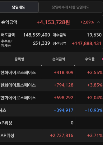 국내 증시 한화에어로스페이스 & AP위성 주식 매매일지