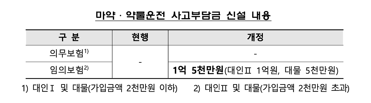 마약·약물 운전자의 사고부담금(최대 1억 5천만원) 신설