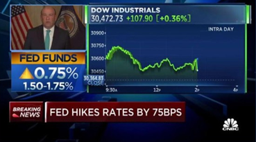 연준(Fed)은 FOMC 성명에서 기준금리를 75bp(=0.75% p) 인상할 것이라고 발표했습니다.