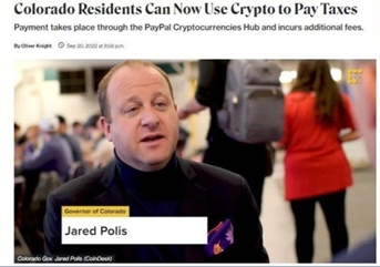 4. 콜로라도, 암호화폐로 세금납부 허용.. 페이팔과 협업