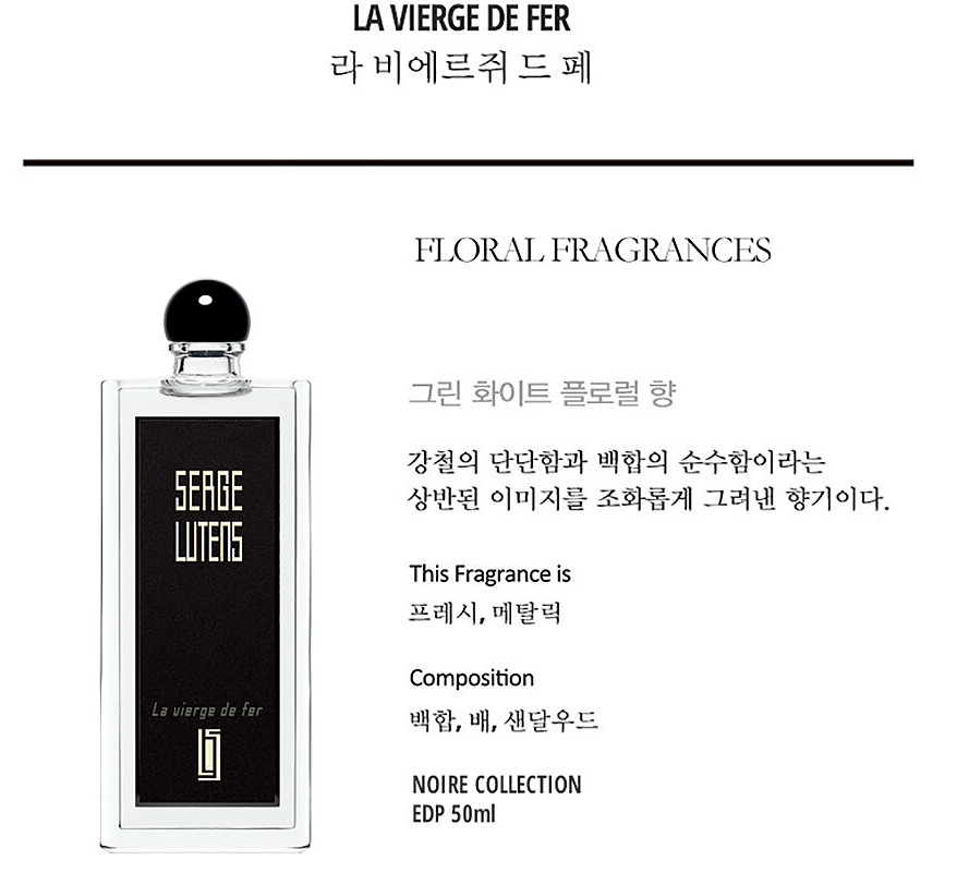 세르주 루텐 향수마다 지어지는 한국 닉네임으로는 '철의 여인'으로 해석할 수 있습니다.