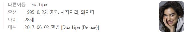 Dua Lipa 두아리파 프로필
