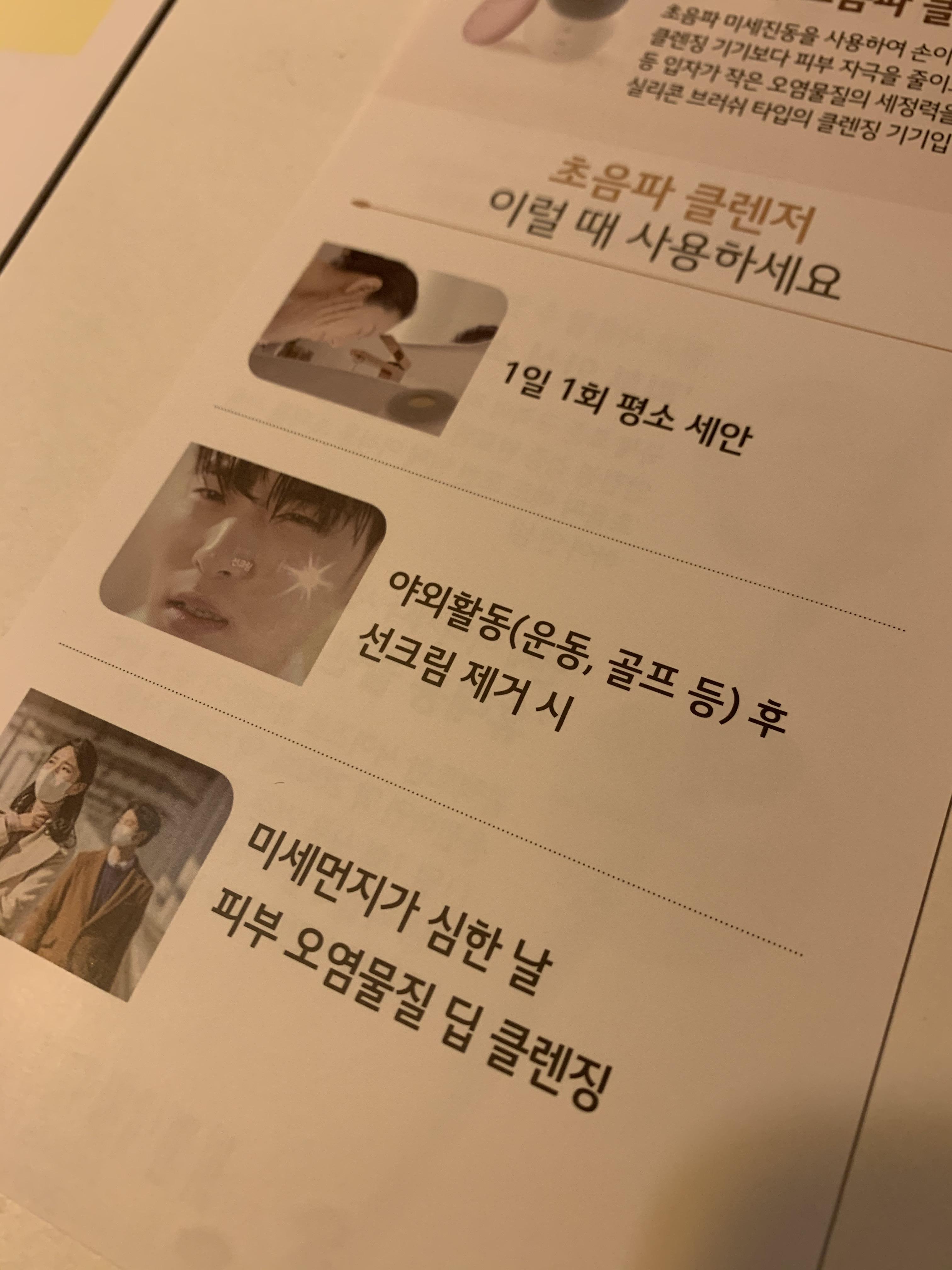 ˙ 주요 기능은 초음파 딥 클렌징과, 실리콘 브러시 미세진동으로 인한 클렌징 관리